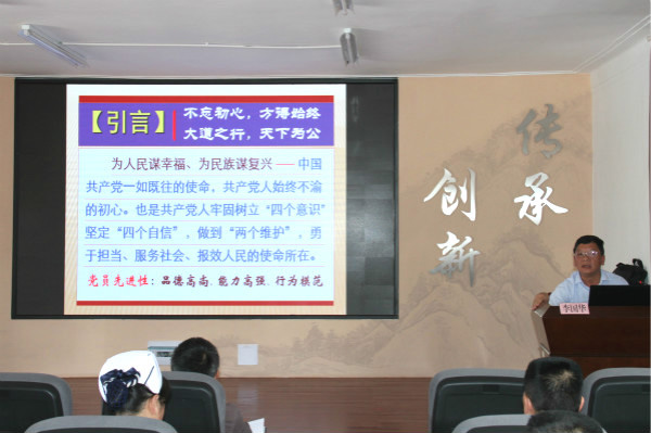 州委党校李国华副教授最后给全体党员作了一堂“不忘初心,牢记使命”的主题党课。党课讲解引人入胜、慷慨激昂,举例佐证,循循善诱,引来阵阵掌声,为党员干部精彩诠释了共产党人的“初心”和“使命”,进一步增强了广大党员干部的历史责任感和使命感。“谋复兴”“谋幸福”是使命所系,宗旨所在,党员干部要将“初心”“使命”内化于心,外化于行。不忘初心,方得始终,牢记使命,方能行稳致远。
